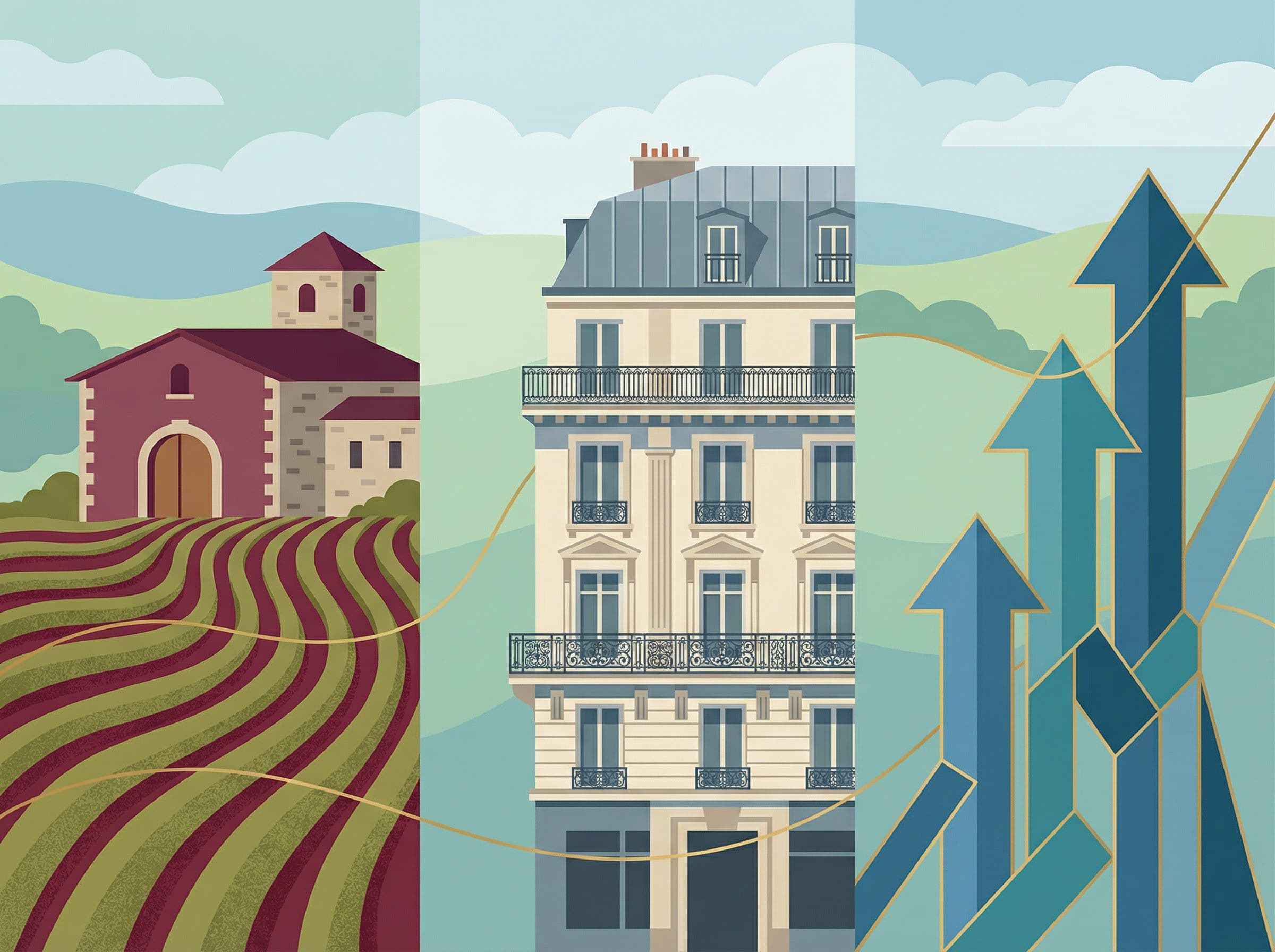 Dans les métropoles en forte croissance (Paris, Lyon, Bordeaux), l'immobilier peut afficher des plus-values de 5-8% annuelles, supérieures à l'appréciation foncière viticole (4,3% en moyenne).